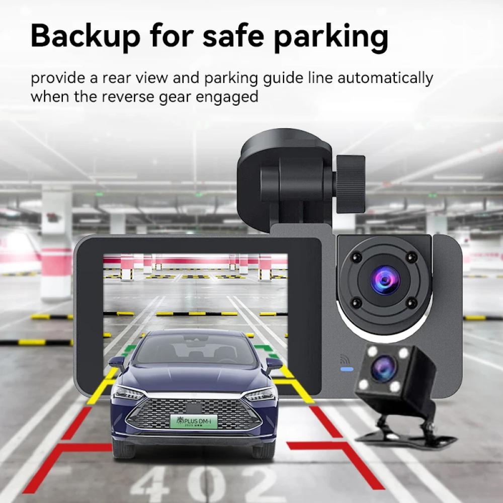 كاميرا امامية وخلفية للسيارة بدقة 1080P مع خاصية WiFi تمنحك تغطية شاملة لكل تفاصيل الطريق من الأمام والخلف وحتى داخل السيارة وذلك بفضل العدسات الثلاث عالية الجودة التي تسجل كل لحظة بوضوح.